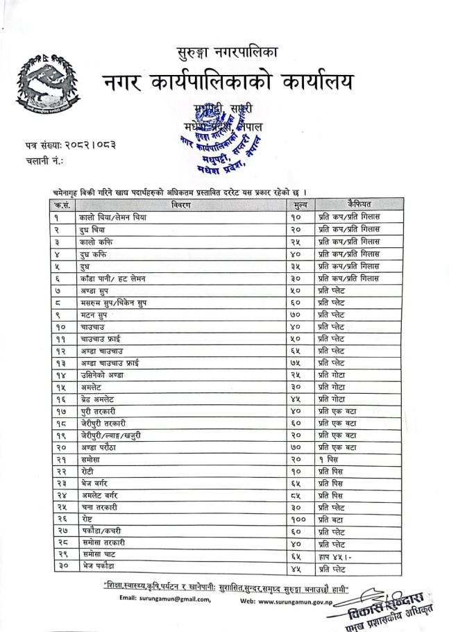 सुरुंगा नगरपालिकाको कर तथा शुल्कहरु ०७९/८०