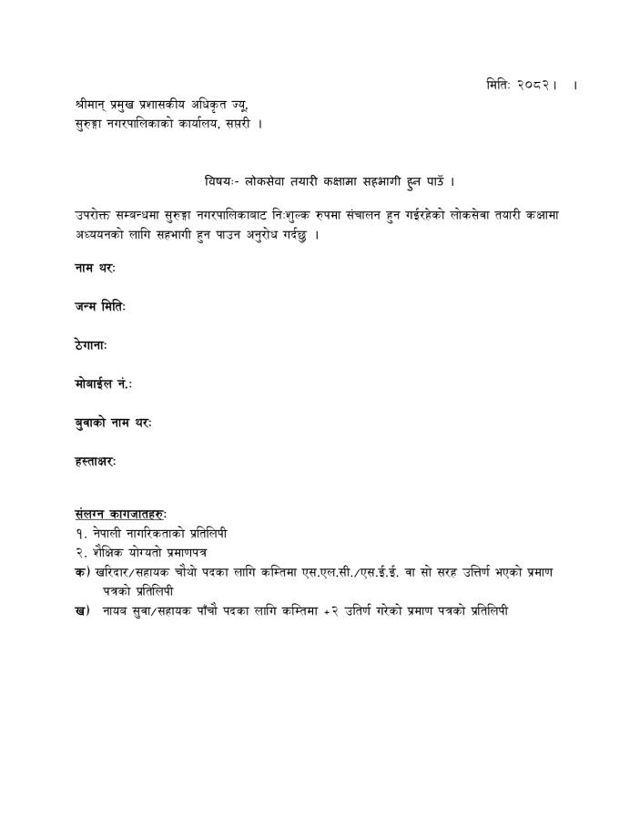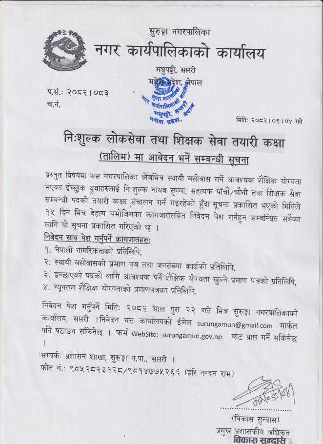 नि:शुल्क लोकसेवा तथा शिक्षक सेवा तयारी कक्षा(तयारी) मा आवेदन भर्ने सम्बन्धी सुचना |