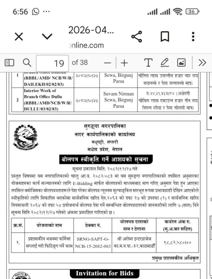 » बोलपत्र स्वीकृत गर्ने आशयको सुचना ।