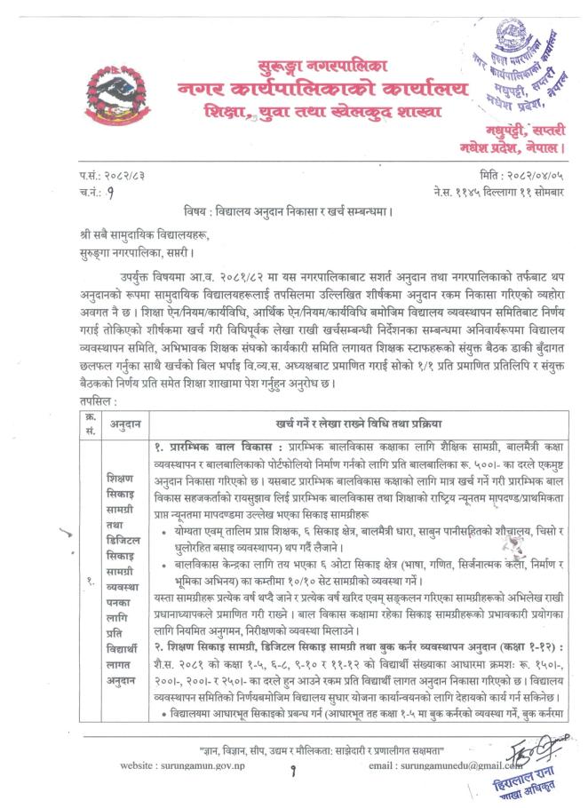 » विद्यालय निकासा विवरण तथा खर्चसम्बन्धी निर्देशन ।