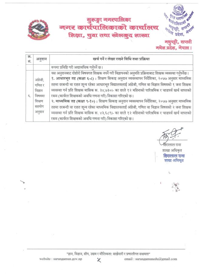 सुरुङ्गा नगरपालिकाको आन्तरिक आय ठेक्का सम्बन्धी संसोधन गरिएको सुचना |