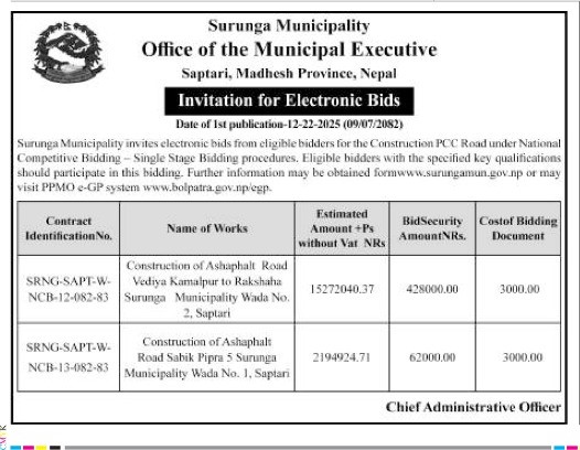 सार्वजनिक खरिद/बोलपत्र सूचना