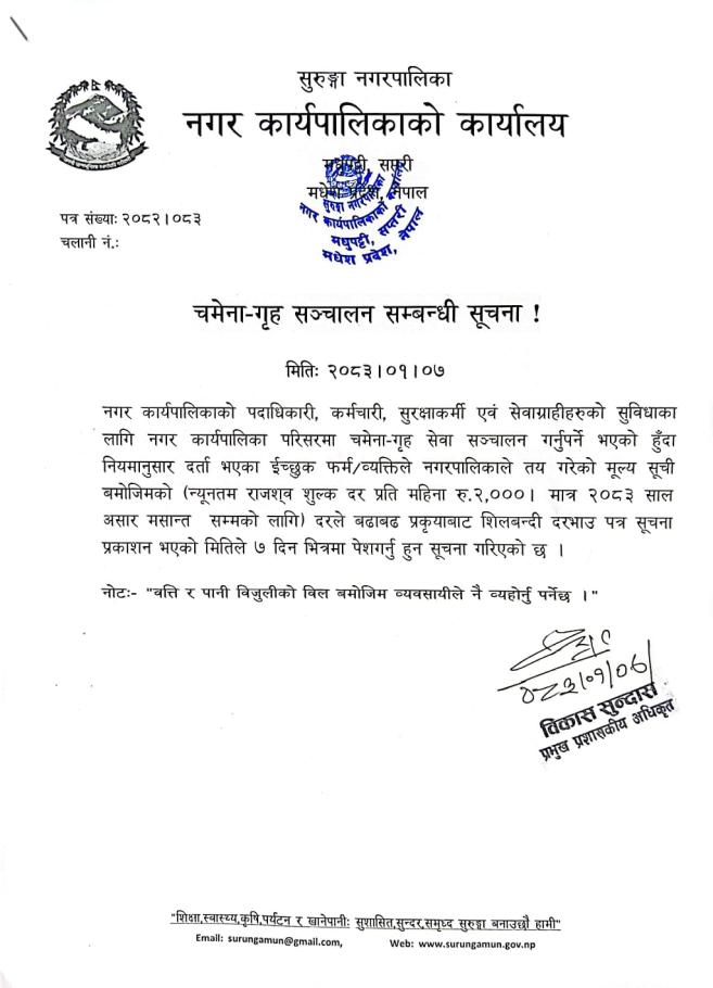 सुरुंगा नगरपालिकाको कर तथा शुल्कहरु ०७९/८०