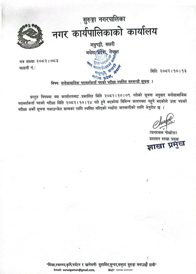 परीक्षा स्थगित गरिएको बारे सूचना |