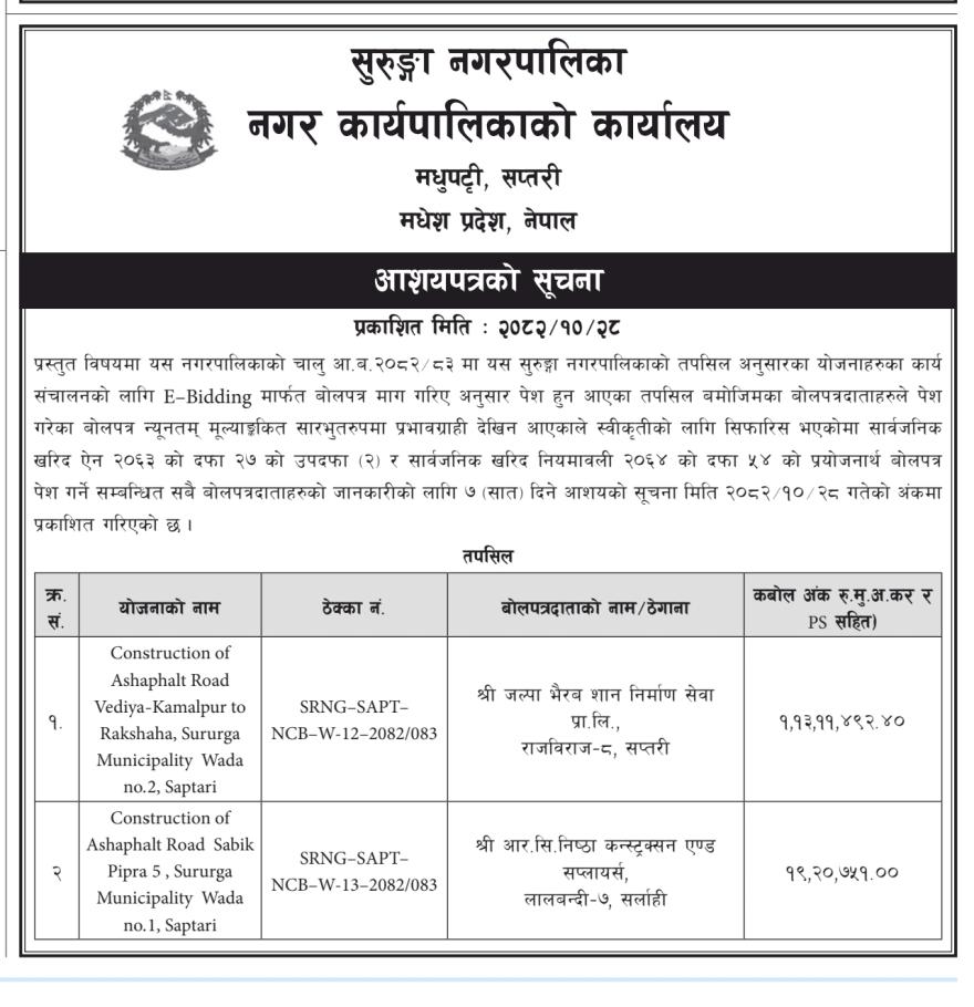 » बोलपत्र आशयको सुचना