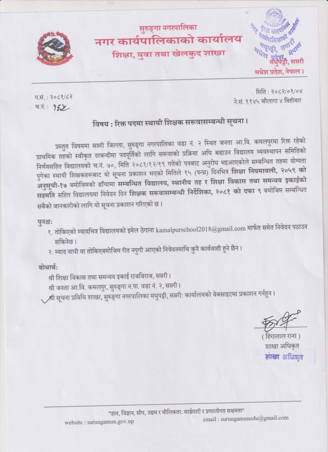 रिक्त पदमा स्थायी शिक्षक सरुवा सम्बन्धी सुचना |