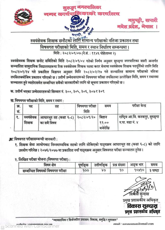 » शिक्षक पदको सामान्य परीक्षाको नतिजा प्रकाशन तथा विषयगत परीक्षाको मिति निर्धारण ।